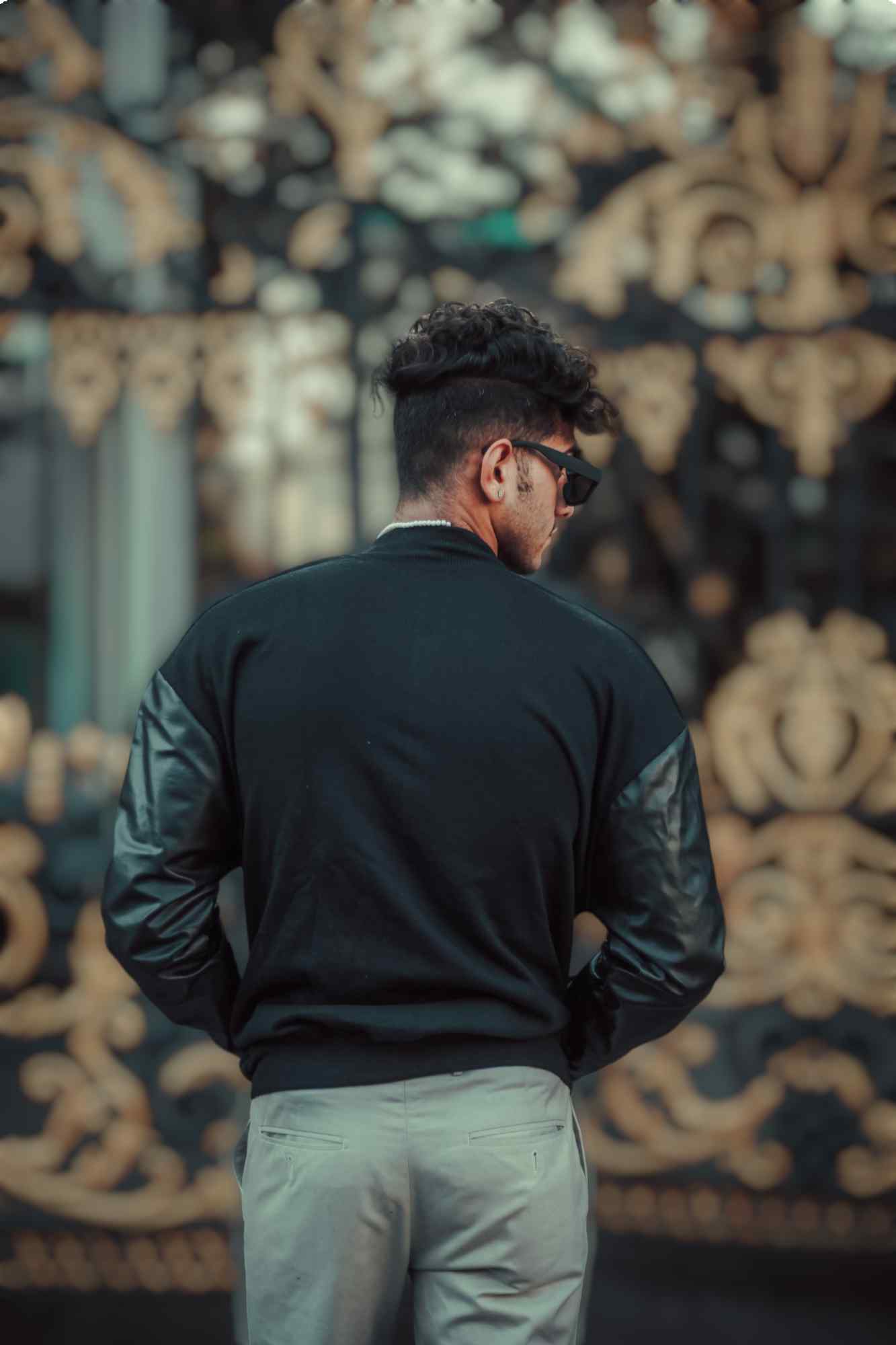Black Leather Sleeves Varsity Jacket – Wool Body & Faux Leather Sleeves
